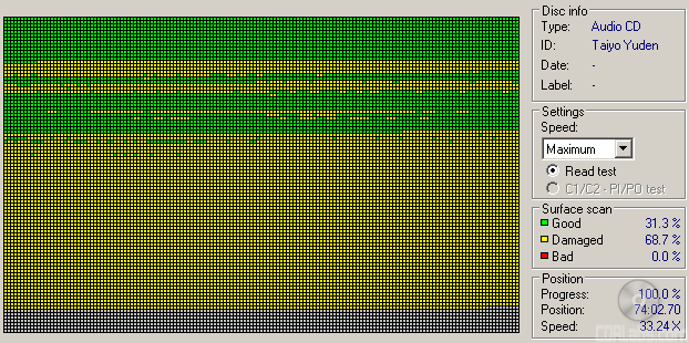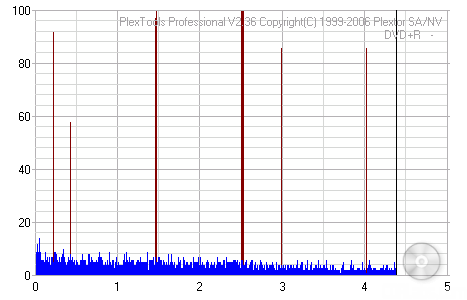 I also put these discs through a "stress test" by reading them back at 16x with the DW1640. By reading these discs back at this speed, we can see if there are any readability issues caused by the number of errors or high levels of jitter.