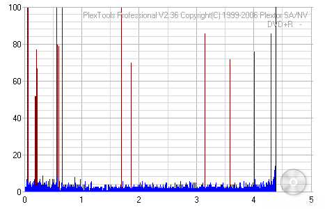 Finding compatible media really wasn't an issue with the PX-755UF. While there were a few cases where PoweRec kicked in, the drive tried to write to all of our test media at its rated speeds. The PX-755UF's writing quality was also pretty good, at least with single layer DVD±R media. With DVD±R DL media though, there were a number of cases where the PI/PIF rates were very high. I must admit this was a bit surprising considering the age and maturity of the drive design.