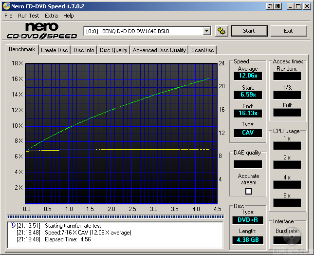 | Taiyo Yuden 16x DVD+R | YUDEN000T03 | 16x | 6:19 |