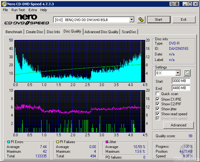I also put these discs through a "stress test" by reading them back at 16x with the DW1640. By reading these discs back at this speed, we can see if there are any readability issues caused by the number of errors or high levels of jitter.