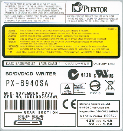By looking at the picture below, you can see that Plextor's new Blu-ray Disc writer is identified as a "PLEXTOR BD-R PX-B940SA."
