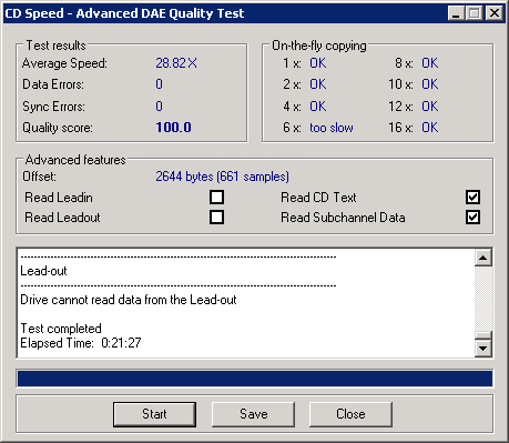 CD Read Tests: For the read performance section of the CD-ROM benchmarks, CD WinBench 99 v3.0 and CD Speed v4.7.7.16 are used to test read speeds, access times and CPU usage. For DAE testing, CD Speed is used to give an overall speed rating.