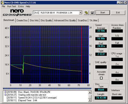 BD Write and ReWrite Tests - Nero CD Speed v4.7.7.16: