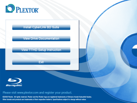 As I mentioned earlier, the PX-B940SA comes with a CD full of software from CyberLink. If you have autorun enabled, the menu pictured below will automatically come up when you insert the disc. From here you can choose to install the bundled software, check out the drive documentation or view the TTDH setup instructions.