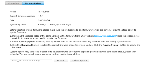 QNAP is continuously improving their NAS operating system. To take advantage of the latest fixes and features, you will need to update the TS-453mini's firmware. This can be done by uploading a firmware image file or through the server's live update feature.
