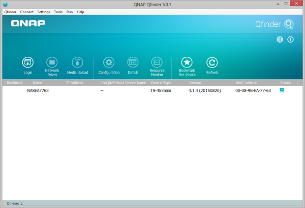 If you choose to do a local installation, you'll need to download and install the QNAP Qfinder software. Like its name suggests, the Qfinder searches the network looking for QNAP NAS devices. When it finds one, it will display its name, IP address, myQNAPCloud device name, server type, firmware version and MAC address.