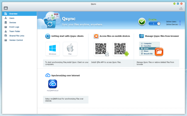 The only real limitation that Qsync has is that it doesn't support SAMBA, FTP or AFP for files access. Thankfully, even if your computer or mobile device does not have the Qsync client, you can still access you files through the web based File Station.