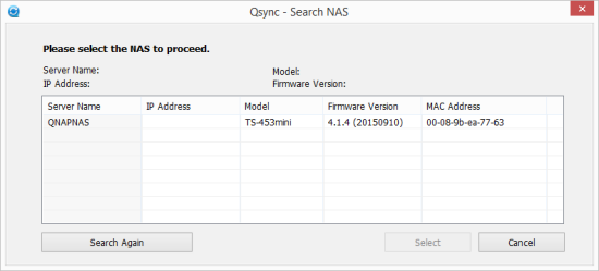 Once you've accepted the terms of the license agreement and chosen the components and the install location, the setup program will prompt you for the IP of the NAS as well as your credentials. If you don't know the IP, there is a handy search option that looks for NAS devices on your local network.