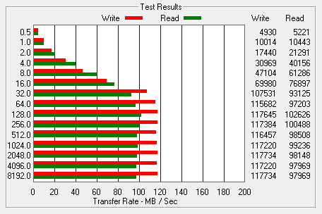 Next, I ran a series of tests using Iometer. This tool can be configured to benchmark a number of things. In this case, I used it to measure the TS-453mini's sequential read and write speeds using blocks ranging from 512B to 2MB in size. The tests were run using random bytes and a queue depth of 3.