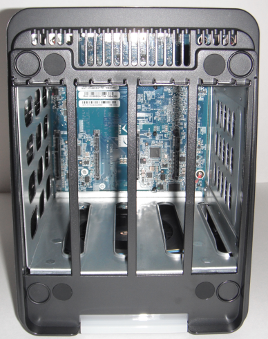 As I mentioned earlier, the TS-453mini's drive bays are located on top of the unit rather than the front. To access them, you have to remove a cover which is held on using magnets. These magnets are quite strong and do a great job of holding the cover on securely.