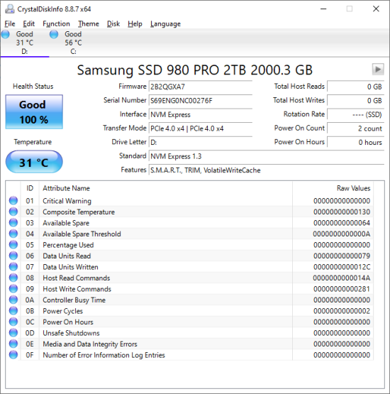 Model: Samsung 980 PRO 2TB PCIe 4.0 NVMe Solid State Drive