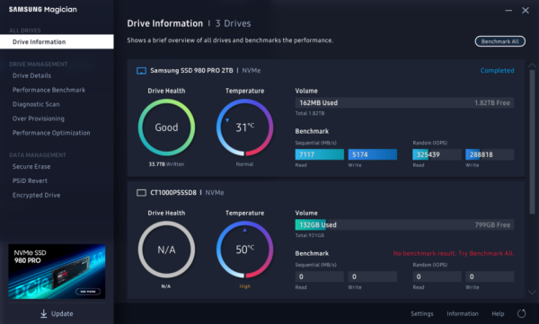Using Magician, users can also do a diagnostic scan to find and fix any errors and optimize the performance and lifespan of their SSD by setting aside extra free space.