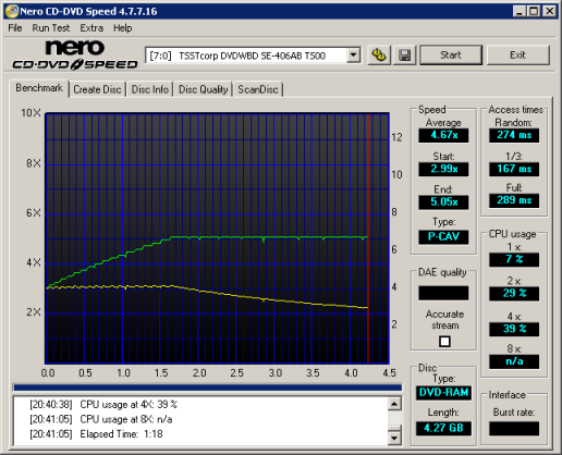 DVD Read Tests: For the read performance section of the DVD benchmarks CD Speed v4.7.7.16 is used to test read speeds, access times, and CPU usage.