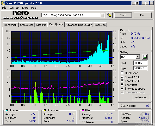 I also put these discs through a "stress test" by reading them back at 16x with the DW1640. By reading these discs back at this speed, we can see if there are any readability issues caused by the number of errors or high levels of jitter.