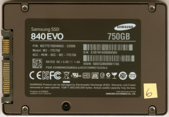 For the 750GB version of the SSD 840 EVO, Samsung used their own 19nm Toggle Mode MLC NAND flash chips. Looking at the pictures above, you can see that there are four 128GB (K90KGY8S7M-CCK0) chips on the front and four 64GB (K9CHGY8S5M-CCK0) chips on the back of the PCB. The drive also has a single 1TB K4P8G304EB-FGC2 LPDDR2 DRAM memory chip that is used for caching.
