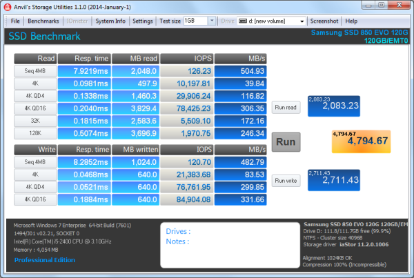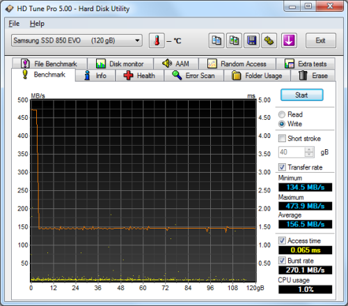 ![]() Samsung SSD 850 EVO 120GB - Write Benchmark |