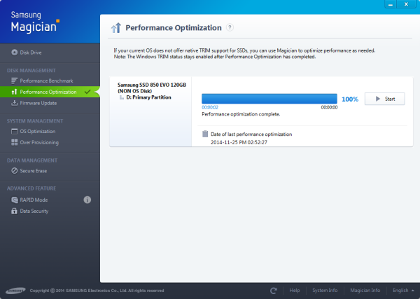 Magician also gives users the ability to benchmark their drives and optimize the performance by forcing TRIM and Garbage Collection to run. In addition to this, users can download and apply firmware updates using the software.