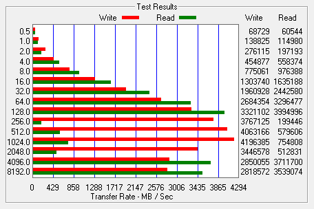 First, I ran a few quick tests using CrystalDiskMark. This benchmark tool measures the performance of a storage device by testing its sequential read and write speeds as well as its random read and write speeds using blocks 512K and 4K in size.