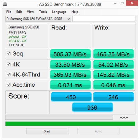 ![]() Samsung SSD 850 EVO mSATA 120GB - Write Benchmark |