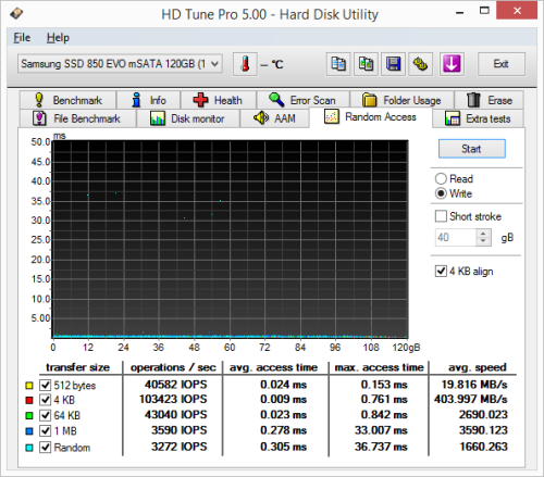 ![]() Samsung SSD 850 EVO mSATA 120GB - Random Access Write |