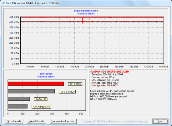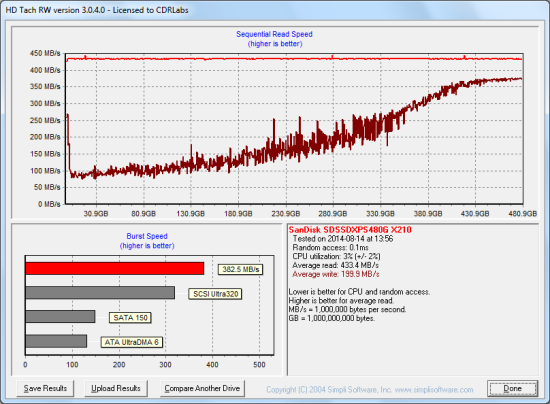 ![]() SanDisk Extreme PRO SSD 480GB - HD Tune Read Benchmark |