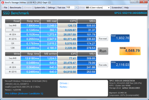 Anvil's Storage Utilities is another new benchmark designed with SSDs in mind. The standard storage benchmark measures a drive's performance by testing its transfer speeds, access times and IOPS.