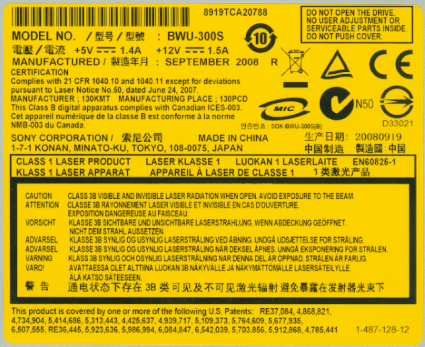 By looking at the picture below, you can see that Sony's new Blu-ray Disc writer is identified as a "SONY BDRW BWU-300S."