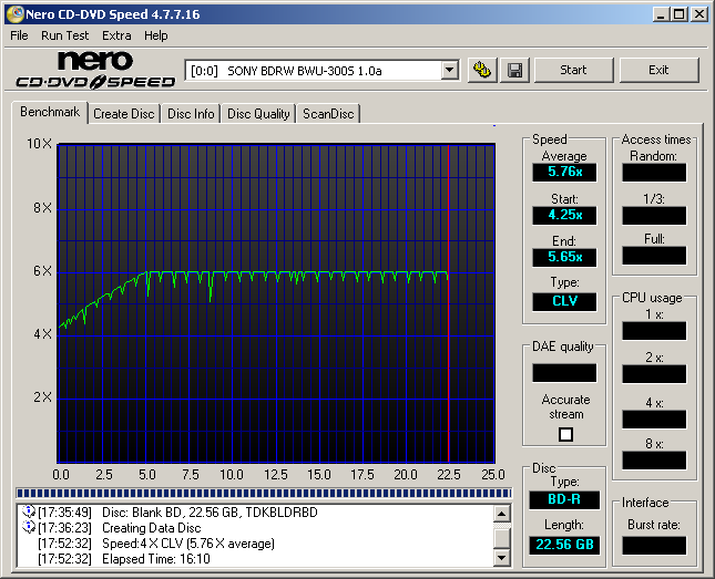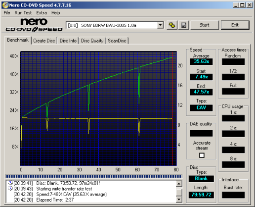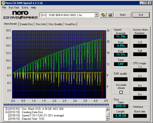 BD Write and ReWrite Tests - Nero CD Speed v4.7.7.16: