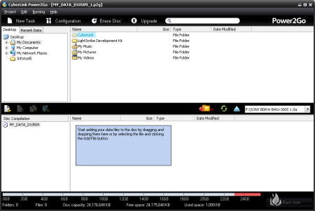 CyberLink Power2Go 6 - Power2Go is the main disc burning program included with the BWU-300S. With this software, users can create various types of CD's, DVD's and BD's or make backups of existing discs. Power2Go also offers enhanced security features, allowing you to password protect and encrypt the names of files on your discs.