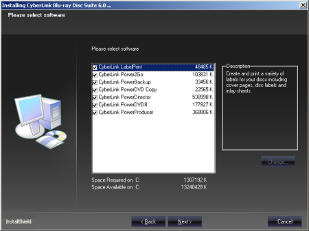 Installing the CyberLink BD Solution suite is pretty straightforward. After selecting your preferred language and entering your customer information, you'll be presented with a list of components to choose from. Simply select the components you want and click next a few times. Once the files are copied over, you can start burning your own discs.