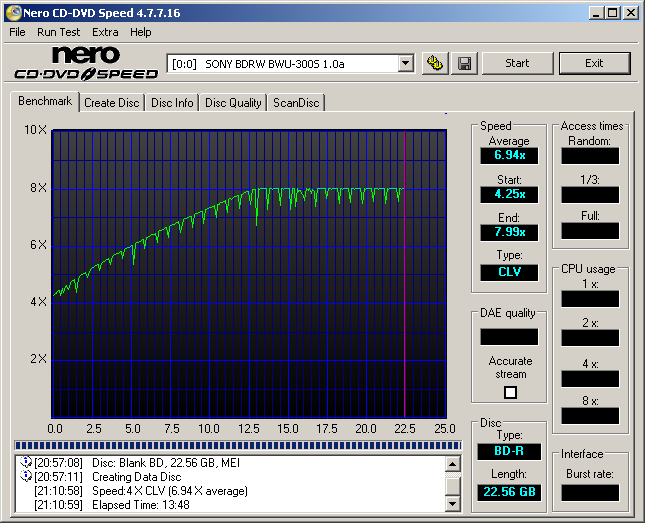 | Verbatim 25GB 4x BD-R | VERBATIMa | 4x | 22:56 | Transfer Rate |