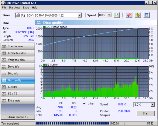 The BWU-500S is one of the few drives capable of performing write quality testing with Blu-ray Disc media. When combined with software like CD Speed or Erik Deppe's Opti Drive Control, the drive is able to report the Long Distance Code (LDC) and Burst Indicator Subcode (BIS).