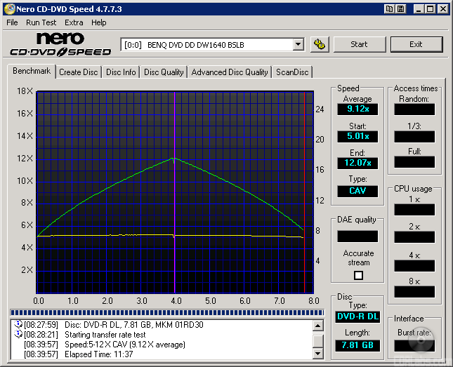 Double Layer DVD Write Tests - Nero Burning Rom 7.11.10.0:
