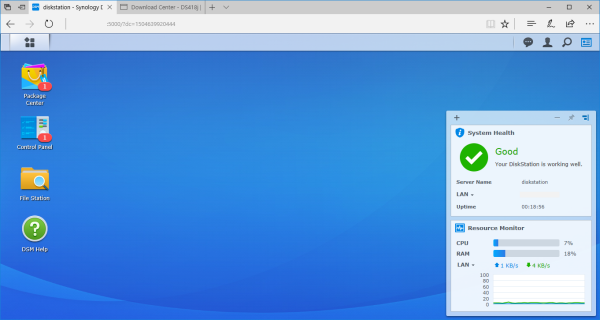 Instead of an LCD panel, the DS418j uses a series of LED indicators to show the current state of the system, network and the installed hard drives. The brightness of these LEDs can be adjusted, or turned off altogether through the control panel within DiskStation Manager (DSM).