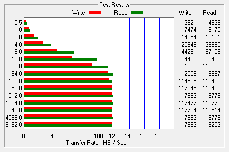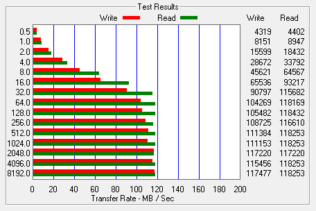 Next, I ran a series of tests using Iometer. This tool can be configured to benchmark a number of things. In this case, I used it to measure the DS418j's sequential read and write speeds using blocks ranging from 512B to 2MB in size. The tests were run using random bytes and a queue depth of 3.