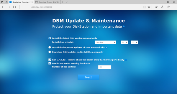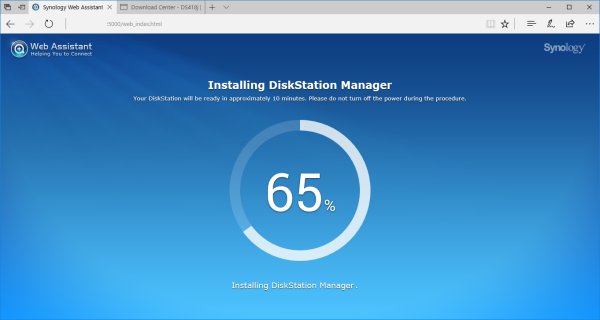 The web assistant takes you through the process of installing DiskStation Manager (DSM). From here you can specify the server name, create an administrator account and set up QuickConnect. All of these settings can be changed later from within the administrator page.
