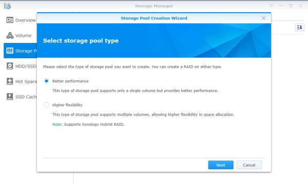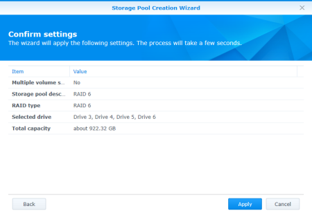 Creating a volume on the DS620slim is pretty straight forward. The Volume Creation Wizard gives you two creation methods: Quick and Custom. The Quick option is recommended if you're short on time or you want to simplify your storage management. This option creates an SHR (Synology Hybrid RAID) volume and will automatically optimize capacity and performance based on member hard disks. If you're looking for more precise control of your storage, you'll want to go with the Custom option which offers support for different RAID types and lets you create single or multiple volumes.
