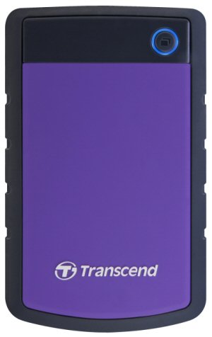 Compared to other portable hard drives, the StoreJet 25H3P is a bit on the large side. Sharing the same basic design as the 25H2P, Transcend's new drive measures 130.8 x 80.8 x 21.7 mm and tips the scales at a whopping 256g. The StoreJet 25H3P's case is constructed out of hard, grey plastic which is covered almost entirely by a purple and grey anti-slip rubber enclosure.