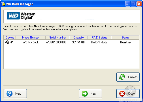 WD RAID Manager is launched by right clicking on the WD Drive Manager system tray icon. Using this utility, you can check the status of the RAID system and change its configuration.